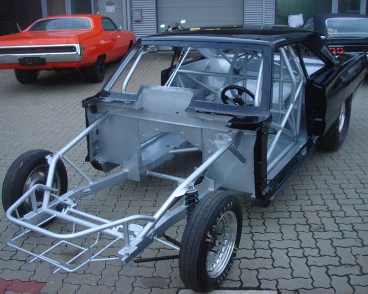 A progress picture from France of Eric Monsenego's B-1 powered Pro Mod Cuda.